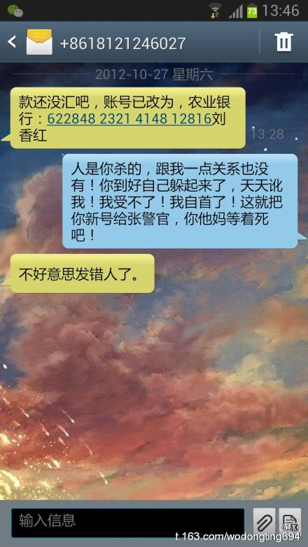 以前收到这样的短信,我直接回复“5000定金已经汇到你刚发的账号,请查收。”过了一阵,对方说还没有收到。我说你待会儿再去查查,就这样一直让对方查了n次。