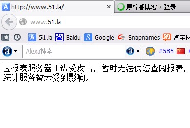 之所以使用51.la,只是因为我第一次使用站长统计的时候用的就是51.la。算是一个习惯吧。这个有着非主流域名的网站却总是不给力,动不动就这个错那个错,而且最离谱的是作为一个站长统计站,竟然动不动就显示什么暂时出错,什么受到攻击……