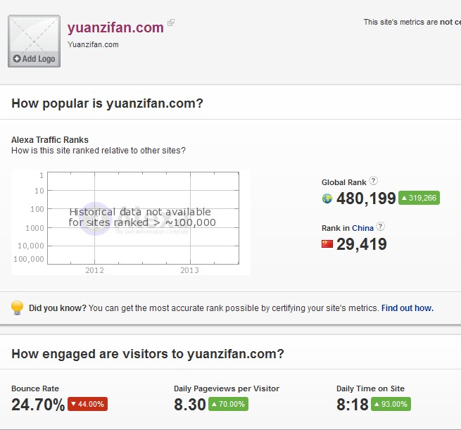 上次前50万都不记得是什么时候了,依稀是一年之前。其实前50万用网络流行语说就是无压力,经过不到一个月并不费什么精力的折腾,站点排名上到了前50万位,距离‘有一定参考价值’的水准(10万),还有40万的距离……