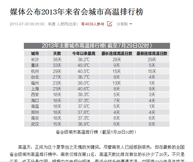 今天,中国启动最高级别高温预警,有40多个城市的气温在40度左右徘徊,40度啊,那还是放在空气中的百叶窗测出来的温度,地表温度早就超过40°了,全国第一的长沙竟然连续热了29天,也就是说过去一个月,整个长沙都在38°左右的热浪中度过。