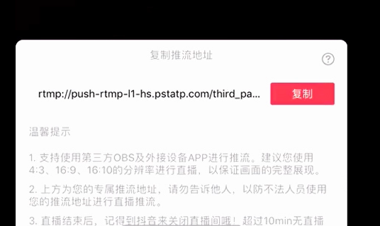 点击“游戏直播”,直播会开启,开启后会推送一个地址,复制这个地址(如果没推送地址,记得将抖音更新到最新版本)文章源自原紫番博客-https://www.yuanzifan.com/46273.html