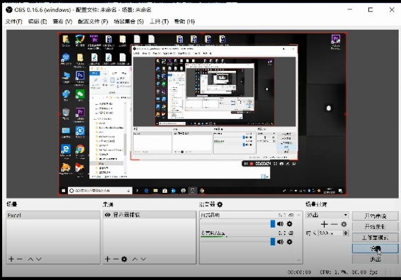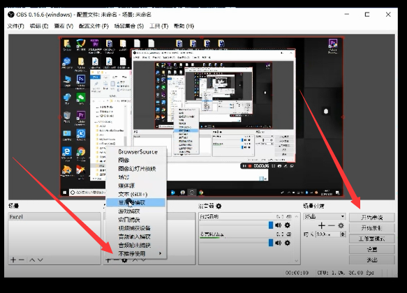 随后需要在OBS的左下角设置一下你要直播的东西,我这里直播的是Excel,所以选择的是展示整个桌面。