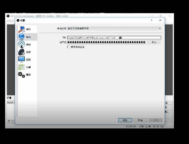 “设置”按钮里有一个“串流”,点“串流”。将刚才复制的地址粘贴进去。记得将steam后面的字符串贴在下面,就是复制下来的地址,分成两段分别粘在URL和“流秘钥”的文本框中。