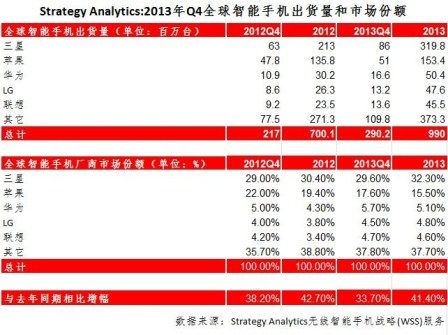 扫了一眼2013年第四季度的智能手机出货量榜单,发现第一和第二名被三星和苹果问稳稳占据,第三名,第四名和第五名分别是华为,LG和联想。文章源自原紫番博客-https://www.yuanzifan.com/4635.html