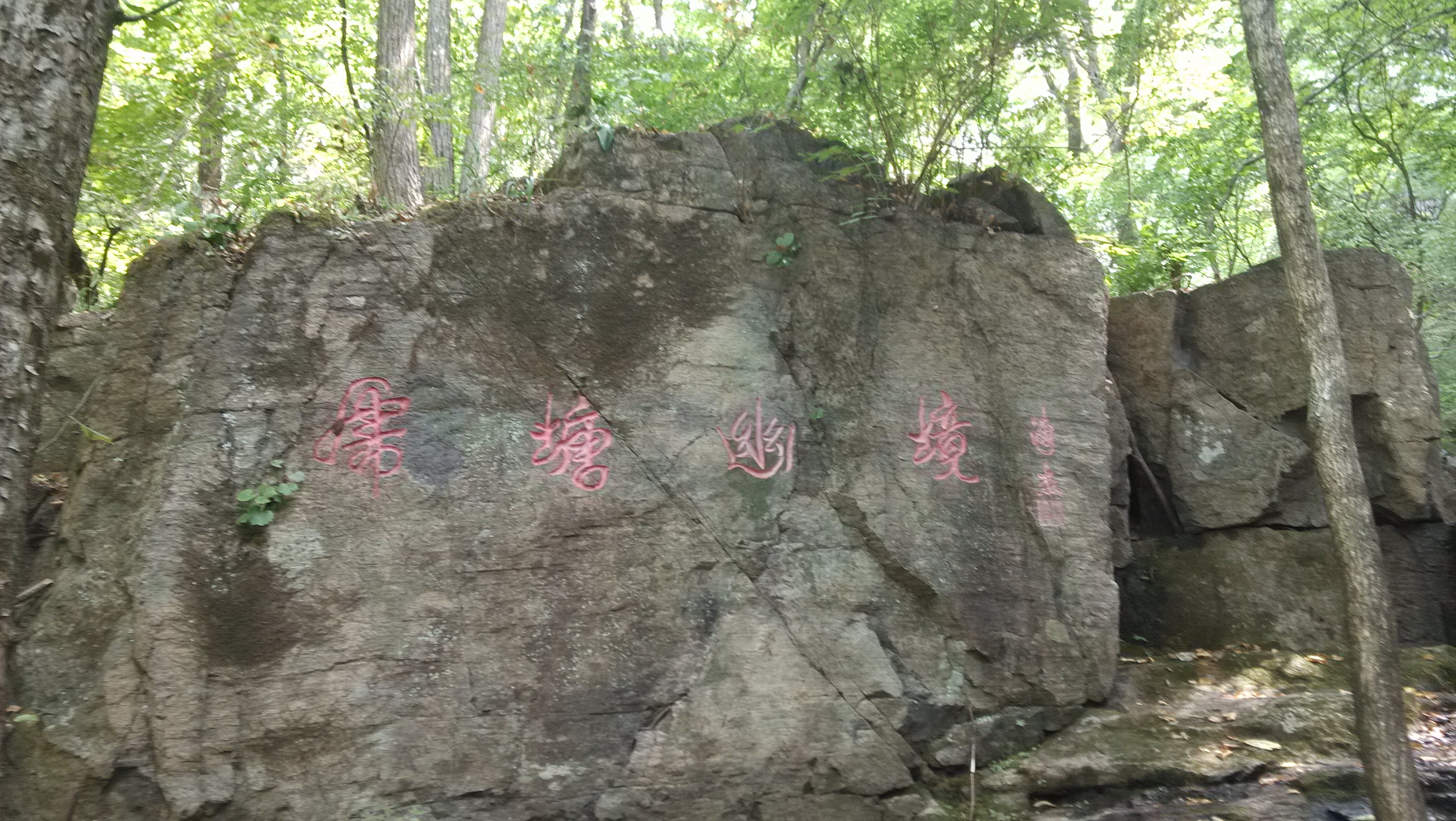 于是只好在周边小小玩耍了一通,第二天,决定去比较出名的“东北小桂林”青山沟去看一看。查了查才发现,原来青山沟是一个统称,实际上,那里有四个已开发的景点:“虎塘沟”,“青山湖”,“飞瀑涧”和“中华满族风情园”。因为是说走就走,周一还要上班,所以只能去其中两个。于是先去了虎塘沟,惊奇的发现好几个瀑布竟然都没有水,问了才知道原来这里已经三个月没下雨了——靠,难道昨天下雨都是幻觉么?距离只有区区七十公里而已啊……