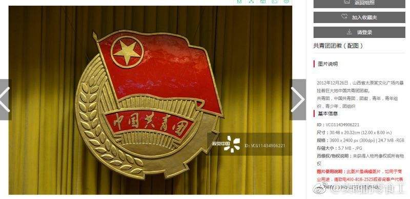 现在百度搜索图片,很多都带着“版权”二字,很多都是视觉中国的版权,尽管只是一张纯黑色背景或者纯白色背景,视觉中国敢保证每一张图片来源都清楚么?他们自己说清楚,外人没有证据。这些版权图片,共青团团徽一样也遭到了打水印: