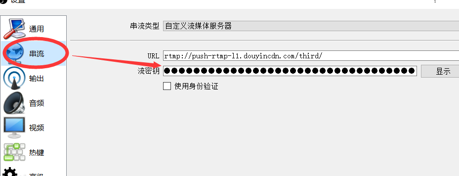 串流之中,输入刚才你复制的那个地址。记得把URL和密钥分开。一般来说,Steam之后的算是密钥。