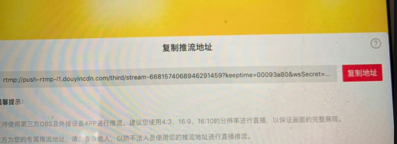 点击开始直播,屏幕下方会弹出一个OBS推流地址:文章源自原紫番博客-https://www.yuanzifan.com/53459.html