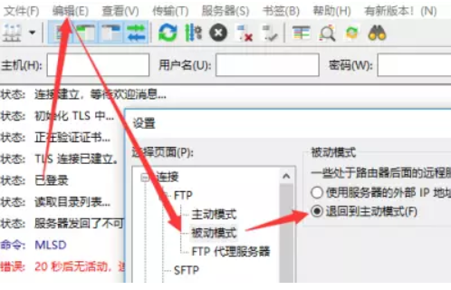 网上的解决方案是把FileZilla换成被动模式,然后再次尝试连接。可是调整了好多种方法,始终是无法连连接的。报的错误始终也都是那一个。文章源自原紫番博客-https://www.yuanzifan.com/53937.html