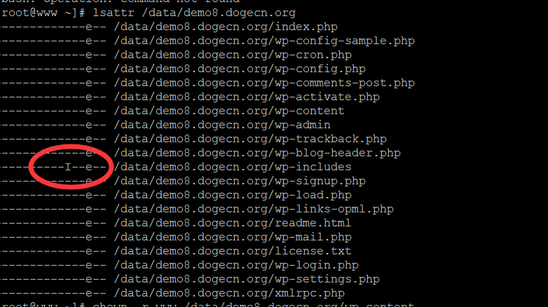 使用lsattr命令查看文件夹权限,发现有一部分是i权限的文件夹文章源自原紫番博客-https://www.yuanzifan.com/53958.html