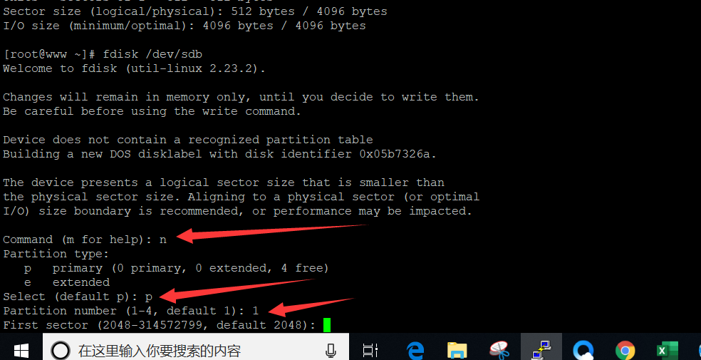 [root@www ~]# mkfs -t ext3 /dev/sdb1
