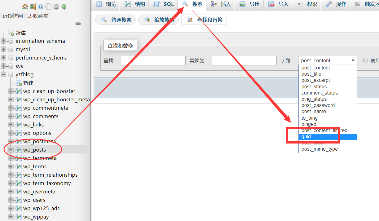 主要链接一般都在WP_Posts里面,以下几个字段需要修改:文章源自原紫番博客-https://www.yuanzifan.com/54048.html