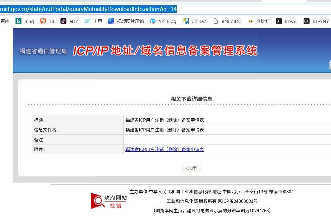 上面的地址是福建的备案注销表下载地址。对应你的省份,将首字母改成你省份的拼音缩写。即可。文章源自原紫番博客-https://www.yuanzifan.com/54133.html