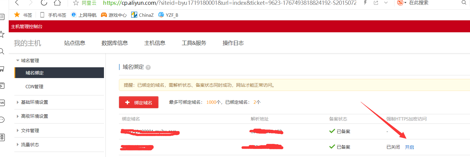 然后,打开虚拟主机控制面板,找到“域名管理”,点击“域名绑定”:文章源自原紫番博客-https://www.yuanzifan.com/54137.html