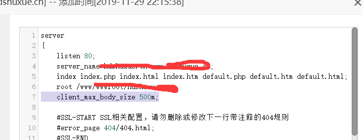 添加下列代码,然后重载配置,重启Ngnix。即可生效。(下面例子是把尺寸扩大到500MB,不过我不建议搞这么大)