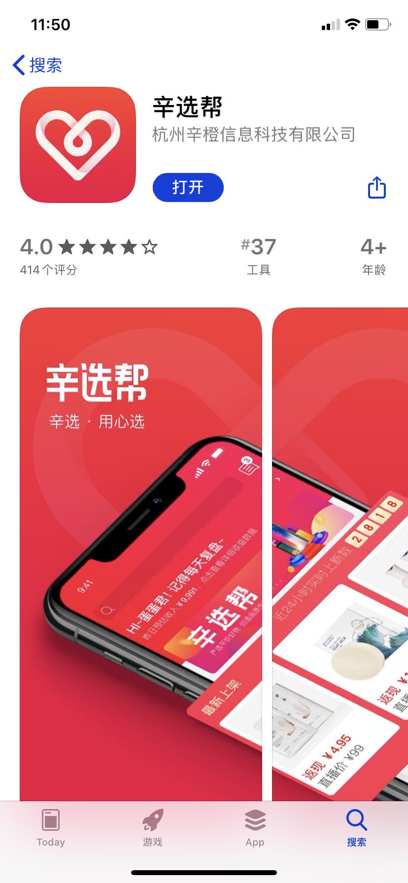 随后我发现,辛巴自己弄了个APP,叫辛选帮,注册公司为杭州辛橙信息科技有限公司。