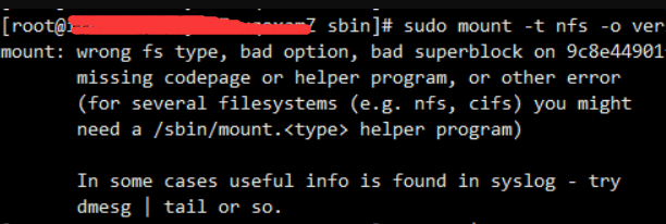 授权后,nfs-utils终于安装成功,可是挂载硬盘的时候,仍然提示一个奇怪的问题: