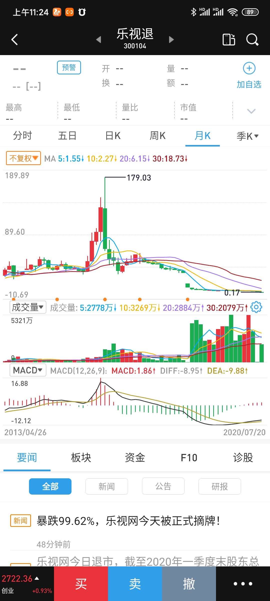 摘牌前股价0.18元。