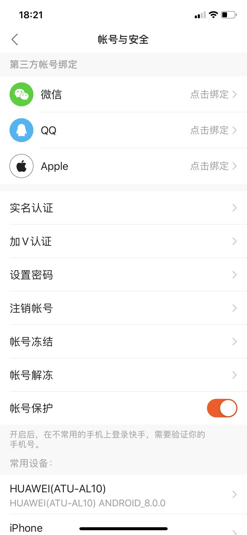 登录快手后台-设置-账号与安全-注销账号
