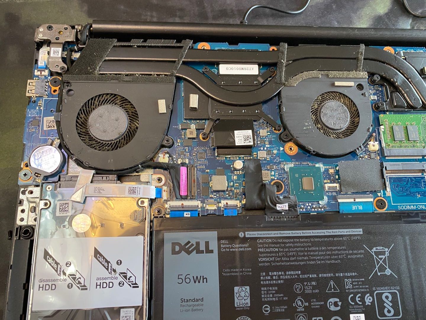 本来我没想过要拆后盖,原本觉得换个内存不用这么麻烦。可是这个戴尔G3偏偏就这么麻烦,必须要把后盖全部拆掉,才能开始换内存。这个后盖上布了10个螺丝扣,有的紧有的松,费了好一番周折,这才打开了后盖,发现落灰无数。找了小刷子清理了一下,也没敢动主板,据说这个机器主板在接触后容易短路烧掉。按我对主板的理解,应该不会这么夸张,但还是小心为妙,话说苹果的面容识别组件“碰一下就烧”就真的是字面意思。我上学那会儿已经是上一个时代了,谁知道这里面有么有容易短路的组件……
