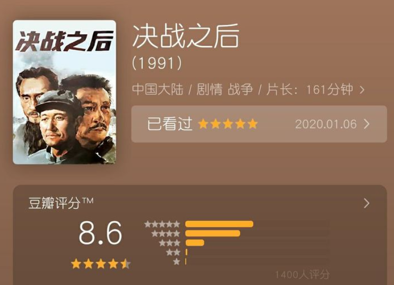 时至今日,这部电影的豆瓣评分8.6分。前面的文章说过,2020年,是“无产阶级觉醒年”,这样的大环境下,毛选脱销,此类电影评分开始走高,是一个很正常的现象,甚至可以说,这类片子的客观评价本来就应该很高,只是因为前些年整体舆论的风向,导致了此类电影的整体评分被压低,低于真实水准。目前这个8.6的评分,基本符合这部片子的质量水准。