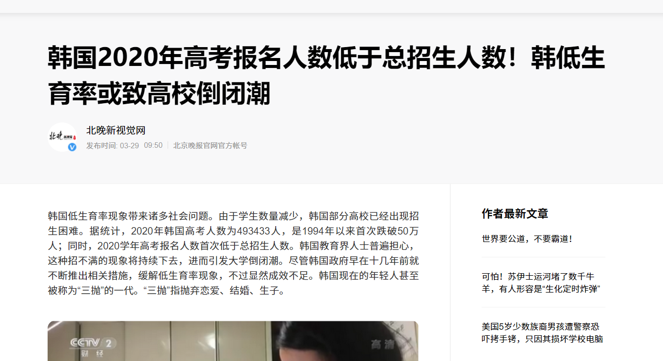 韩国出生率为负已经有一段时间了,今天看到新闻说韩国现在高校面临倒闭潮。而在中国,情况稍好一点,但也只是稍好,和非洲的高生育率、中东地区的高生育率、印度的相对较高生育率来说,中国的生育率实在是太低了。人口增长趋势放缓十分严重,估计用不了几天就可能走到人口下降的趋势。