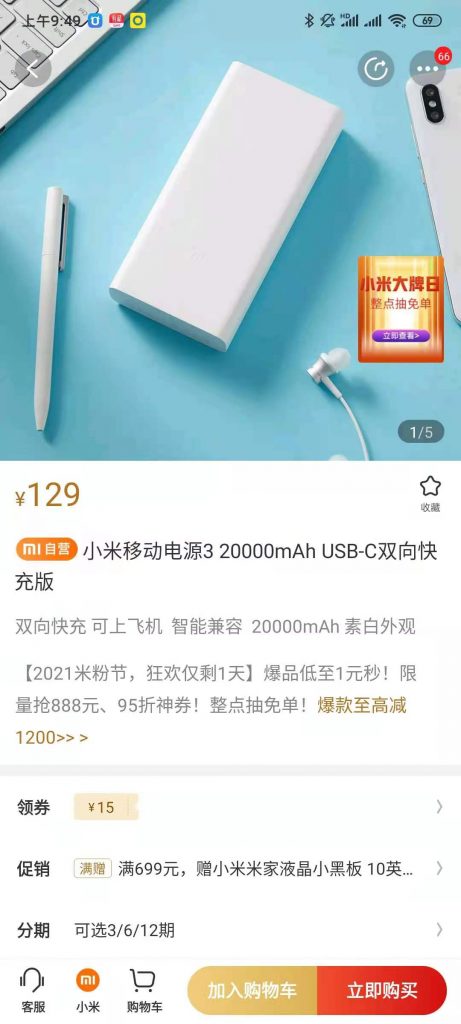 我先是在小米有品上买了个充电宝。后来却发现小米有品上的居然比小米商城还贵了15块钱。想到虾米商城是不包邮的,那么加上这10块,我还是多花了5块。