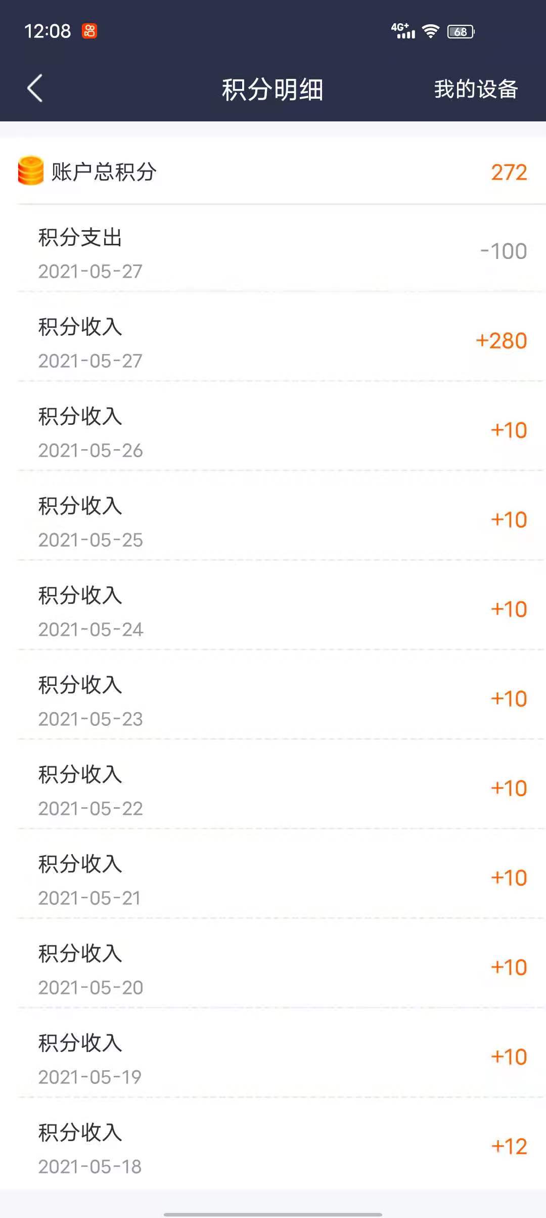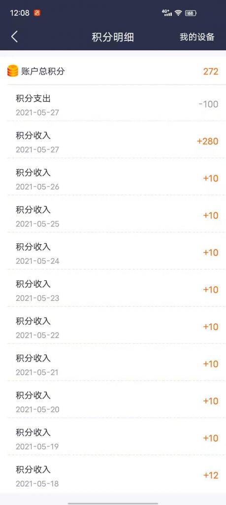 开通无线宝第十天,积分拿到了280分,折算人民币是2.8元。