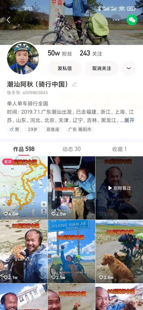 我注意到这个潮汕阿秋大概有一年了。最开始他每次自拍视频都会说“大家好我是90后阿秋骑行中国”。由于这个人的脸实在是不像90后,而且有点儿丑,所以我刷到了好几次都没关注。文章源自原紫番博客-https://www.yuanzifan.com/56075.html