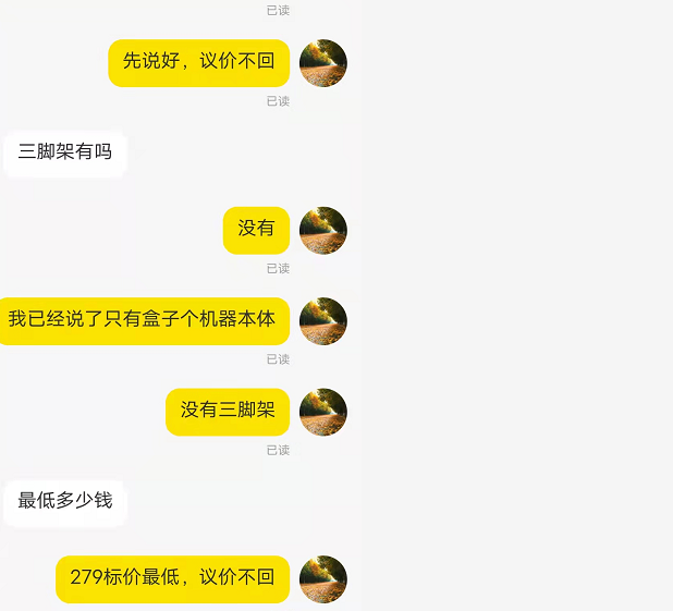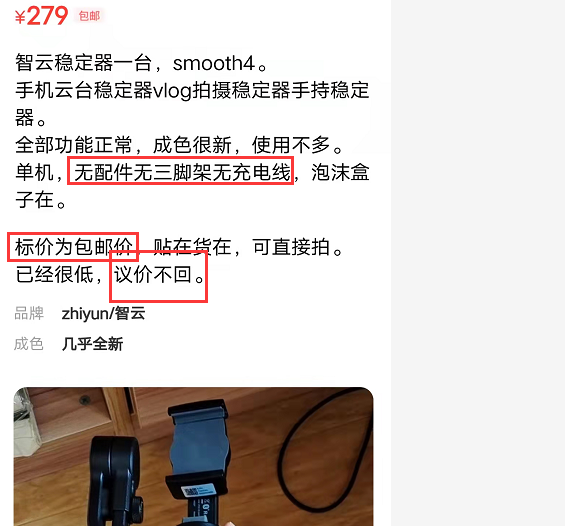 一共不到100字的描述。准确提及了没有三脚架,并且明确表示了议价不回。文章源自原紫番博客-https://www.yuanzifan.com/56099.html