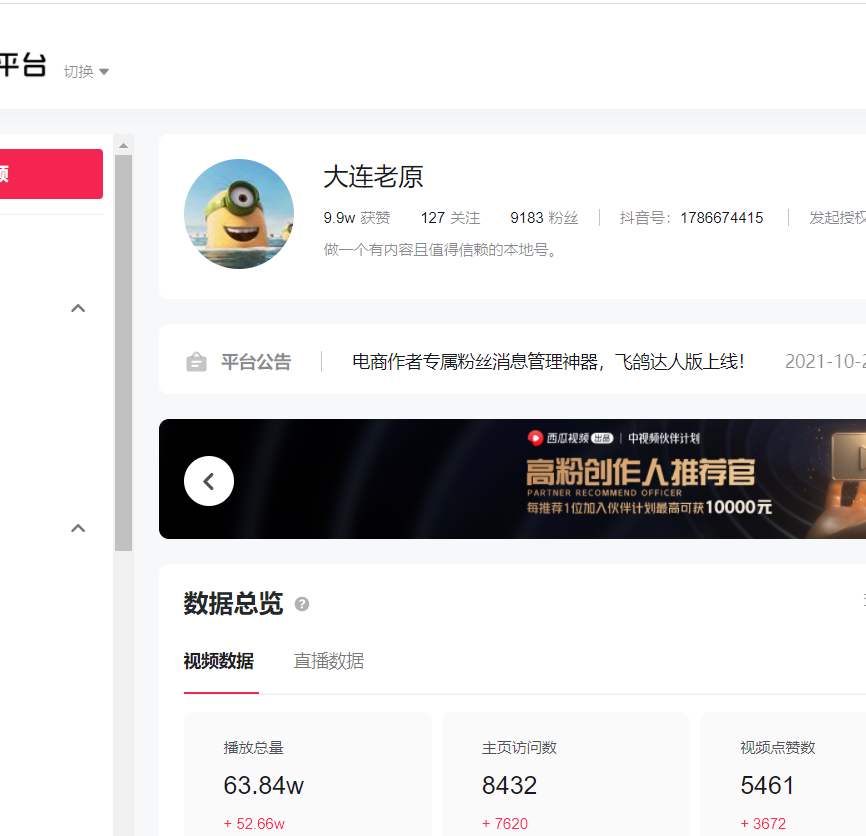 所以,这座城市的人,最近一两周都处于活动量较少的状态,出门也不多。可能这也是我的视频流量上涨较多的原因之一。最近2周时间粉丝做到了9000+,在短视频领域,我的人设来做账号是有一些困难的,首先我连拍摄的团队都没有,对于一些颜值较高的女孩,在抖音快手,颜值就是正义,没有颜值,没有正义,中年男子的人设,需要用更强的内核,来推进剧情,或者剪辑出彩,或者话题性强。文章源自原紫番博客-https://www.yuanzifan.com/56339.html