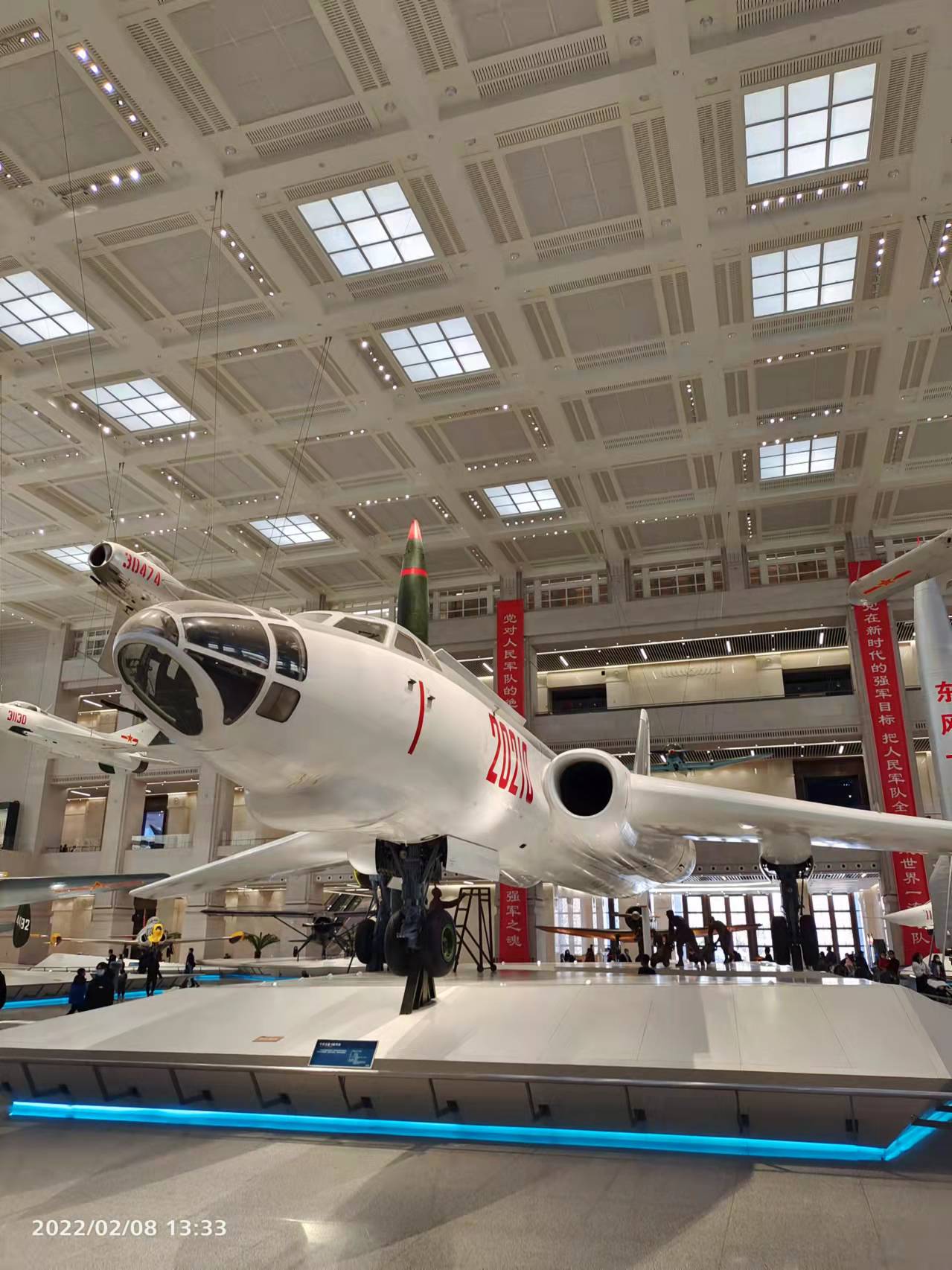 一楼的大厅里,有一个飞机展示厅,其中有歼6,轰6等各种类型的老款飞机。我在旅顺的潜艇博物馆看到过歼5,明显比歼6小了一号。参观过程中我在想的问题是,这些飞机是怎么运进来的,那个大门明显比飞机小好多,这也罢了,问题是外面可是北京二环内,车水马龙,拐弯的路、天桥、交通灯,这些个庞然大物是怎么运进来的,难道都是拆了之后重新组装的么?真是浩大的工程啊。如果这个展览厅是私营的,那么票价我可能真的承受不起。