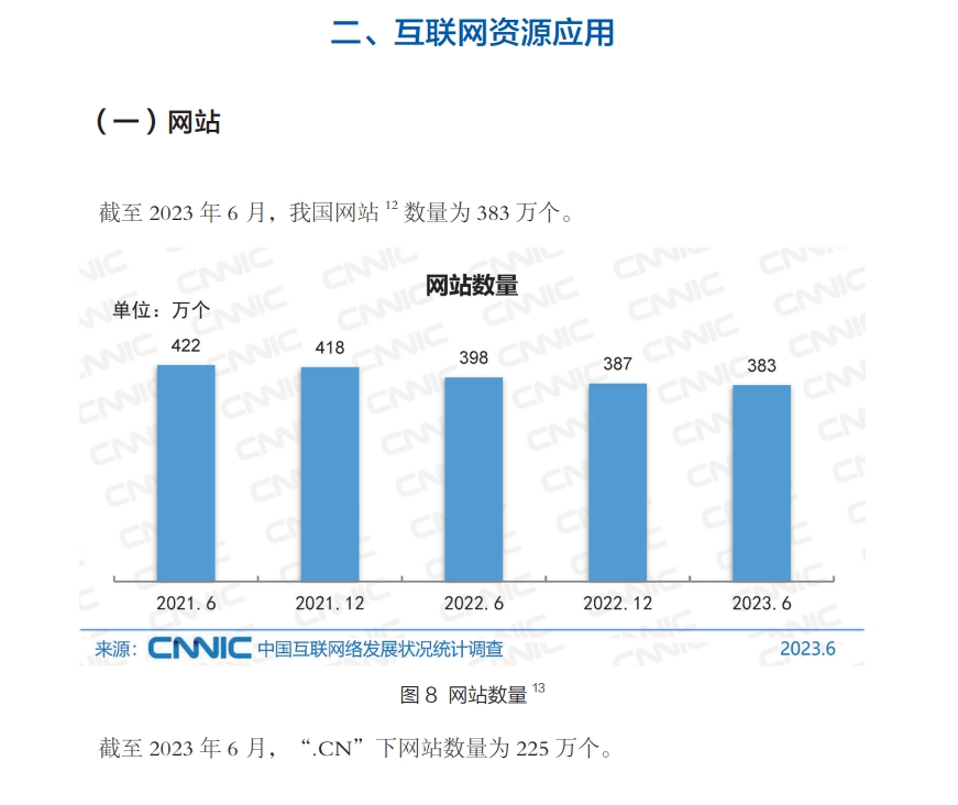 最新数据是CNNIC发布的公告,更新于2023.06。可以看到相对于2022年的年底,到6月份又下降了4万个。在2023年下半年,预测仍然会保持下降的趋势,前期下降规模比较大,这半年应该不会下降过于剧烈。预测剩余网站数量应该在360万以上。文章源自原紫番博客-https://www.yuanzifan.com/56845.html