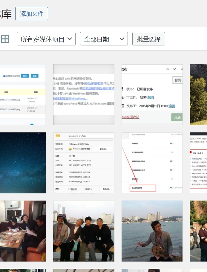 作为对比,Wordpress的媒体库,在很久之前就已经是这样了:文章源自原紫番博客-https://www.yuanzifan.com/57138.html