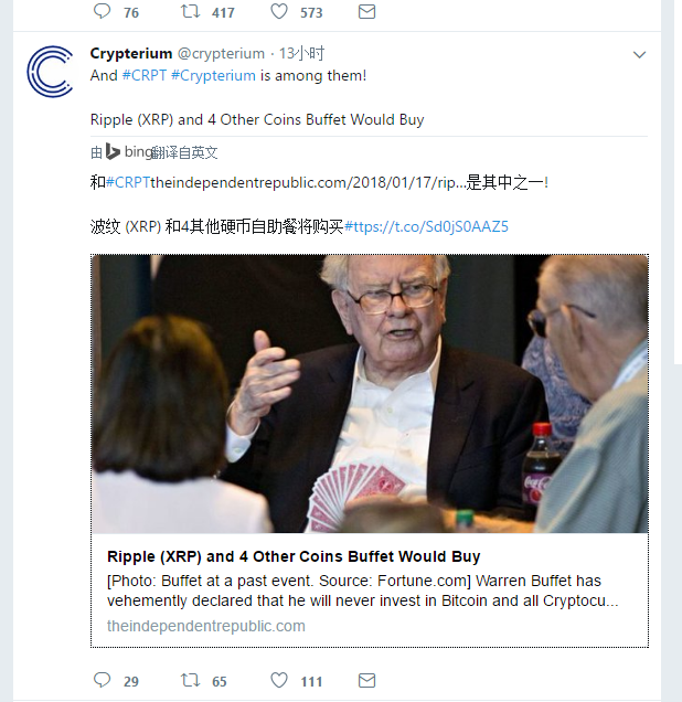 新闻(实际是自媒体发布)地址:https://www.theindependentrepublic.com/2018/01/17/ripple-xrp-and-4-other-coins-buffet-would-buy/