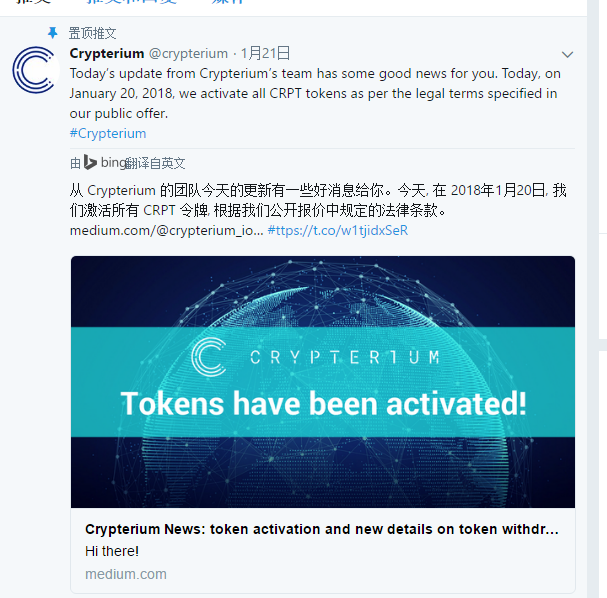 根据Crypterium官方社交媒体的消息,2018年1月20日,所有CRPT币的Token全部激活。目前已经提现的用户数量已经超过3万人。文章源自原紫番博客-https://www.yuanzifan.com/6973.html