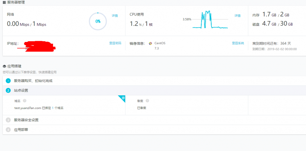 配置还是不错的,个人博客小众的完全够了,一开始用阿里自带的wordpress建站,网页很卡,后面晚上找教程,照着把服务器重置到了CentOS7.3,安装宝塔再用宝塔装wordpress以后,速度快很多了