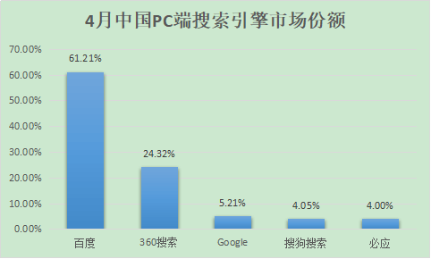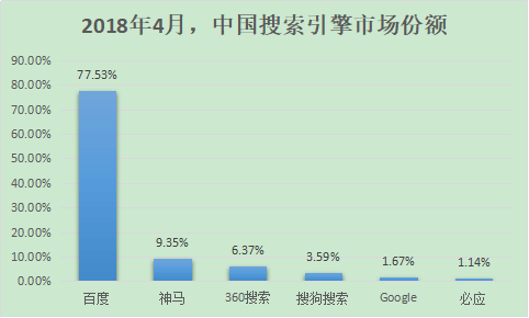 数据来源:http://gs.statcounter.com/search-engine-market-share/desktop-mobile-tablet/worldwide#monthly-201804-201804-bar