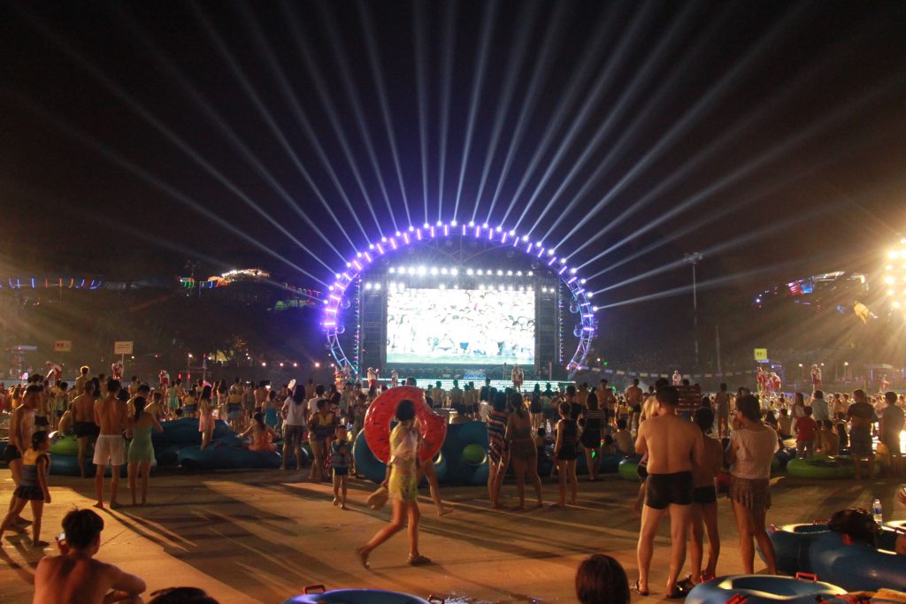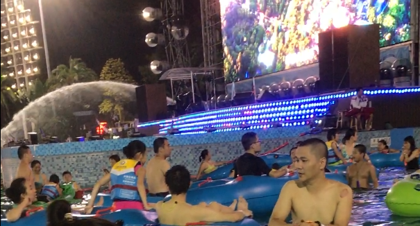 这里面有人造海浪,不过可能是因为夜场,所以没开,但是人还是很多很多。游泳是不可能游泳了,泡在水里冲凉倒还可以,也不知道多少人会在里面撒尿,在陆地上撒尿会尿湿鞋,而这里不会。这样我又想起了我的拖鞋。文章源自原紫番博客-https://www.yuanzifan.com/7666.html