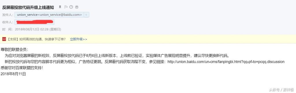 网站挂的百度联盟,其实收益很低,收入还不如每个月卖掉的链接钱,看到这个公告之后我更新了代码,认为百度联盟的收入可能会上一个台阶。