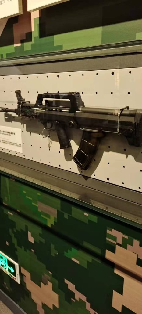 我不算是个军迷,最多就是了解一些战役级别的历史情况,对于单兵武器了解不多,整个参观下来,我认识的武器属实不多,认识的都是一些经典款,比如驳壳枪、勃朗宁1911、毛瑟手枪、五六式步枪、三八大盖、美军的全自动步枪(《太极旗飘扬》里认识的)。新款的步枪,我大概只认识下面这一款,就是吃鸡游戏里面的QBZ,标准名字应该是九五式步枪——说到这里我想起来我还认识八一杠,因为《士兵突击》里面有展示和使用。